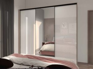 This wardrobe combines elegance with practicality. The sliding doors with mirrors are not just space-saving but also allow for effortless functionality. They glide smoothly, providing easy access to the wardrobe’s contents while adding the convenience of a full-length mirror, essential for dressing and personal styling.